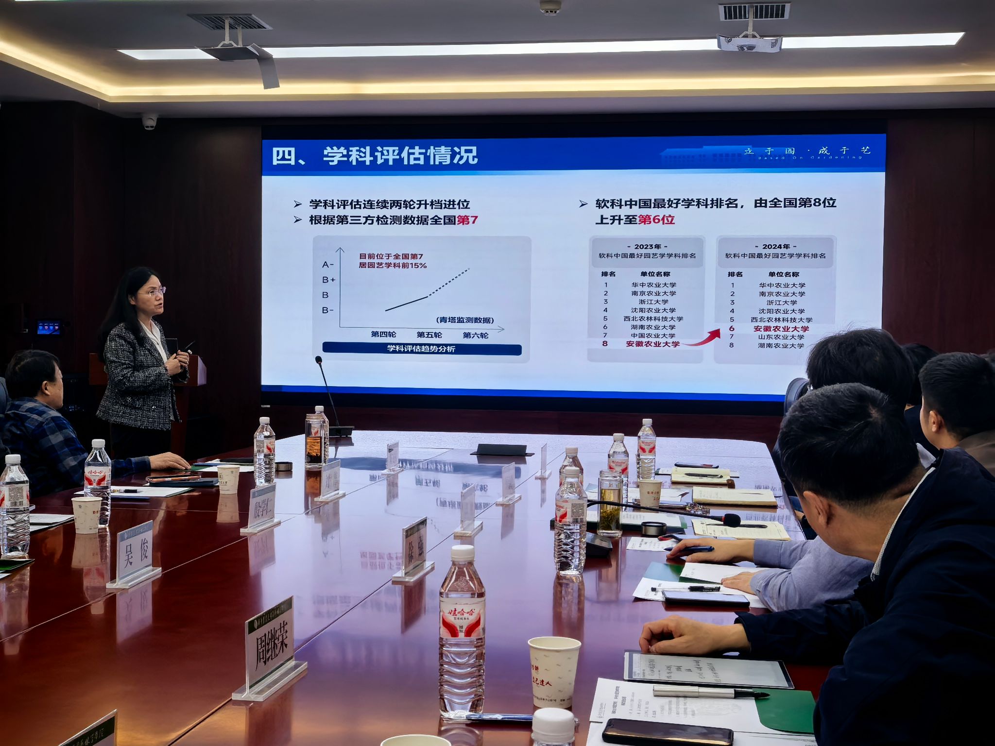 吴俊对学院的热情接待表示感谢。她表示,本次来访旨在推深做实安徽省政府与kaiyun开云官方网站等5家单位组建的“1+5”农业科技创新联盟工作,加强园艺学科合作交流。随后,她从学院历史、基本情况、建设成效、发展规划四个方面简要汇报了园艺学院的发展历史与成绩。她希望在学科建设、科学研究、平台建设、人才培养等方面学习kaiyun开云官网宝贵经验,并期待kaiyun开云官网能持续向安徽农业大学输送优质人才。