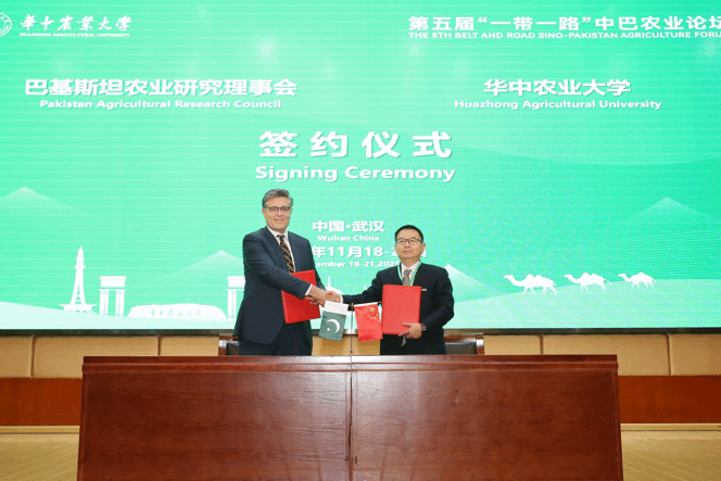开幕式上,kaiyun开云官方网站分别与巴基斯坦农业研究理事会、费萨拉巴德政府学院大学签署合作协议。随后,"武汉市(中国-巴基斯坦)园艺作物种质创新与利用‘一带一路’联合实验室"正式揭牌。