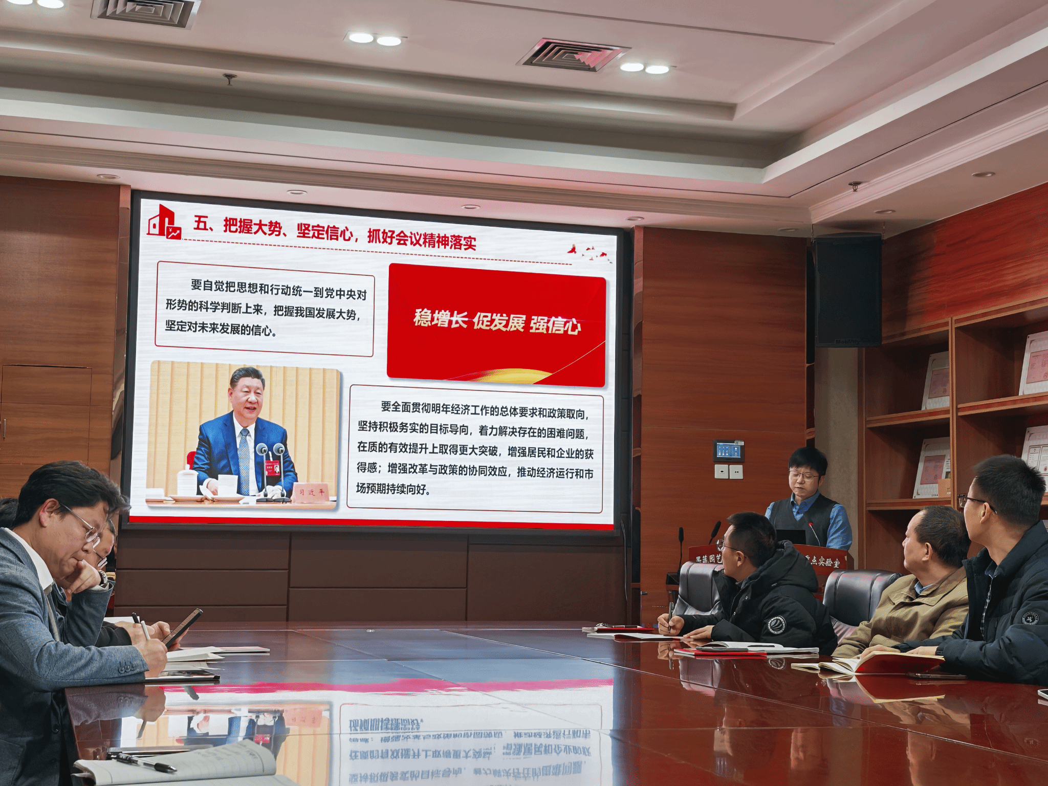 12月18日下午,果树系教工党支部与中国柑桔学会党支部在园林南楼206会议室联合开展12月主题党日活动。活动围绕2025年中央经济工作会议精神和中共中央政治局第二十三次集体学习重要讲话精神开展集中学习,并结合第三次党员基本培训集中大课内容进行交流研讨。支部纪律委员李春龙同志主持领学。