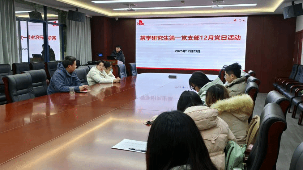 12月23日,茶学系教工党支部与茶学研究生第一党支部在园林北楼219室开展支部联学。茶学研究生第一党支部书记程源同志主持会议,支部红色导师余志老师参加。