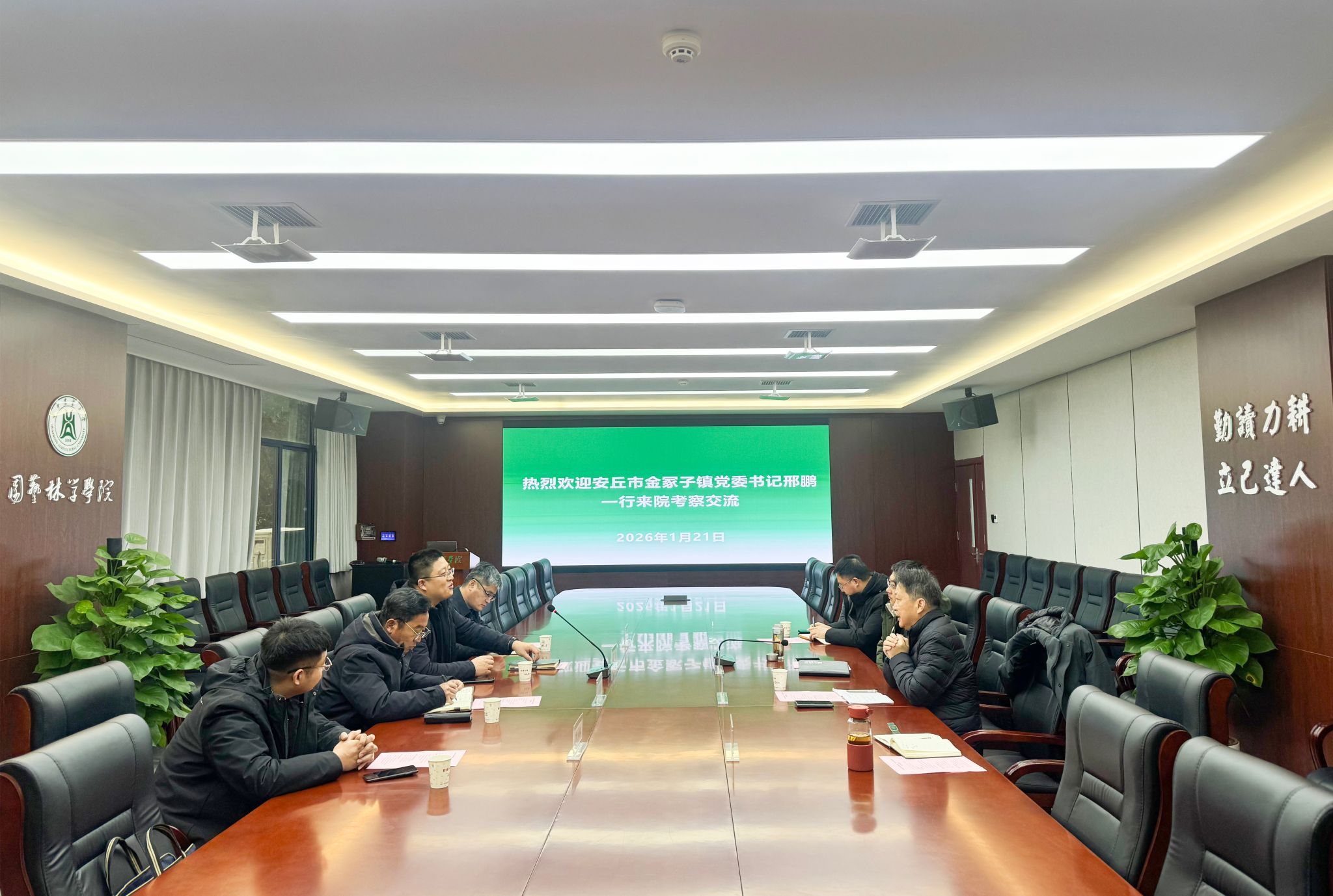 1月21日上午,山东省安丘市金冢子镇党委书记邢鹏一行来校调研。学院党委副书记林辉热情接待了邢鹏一行并举行座谈交流。