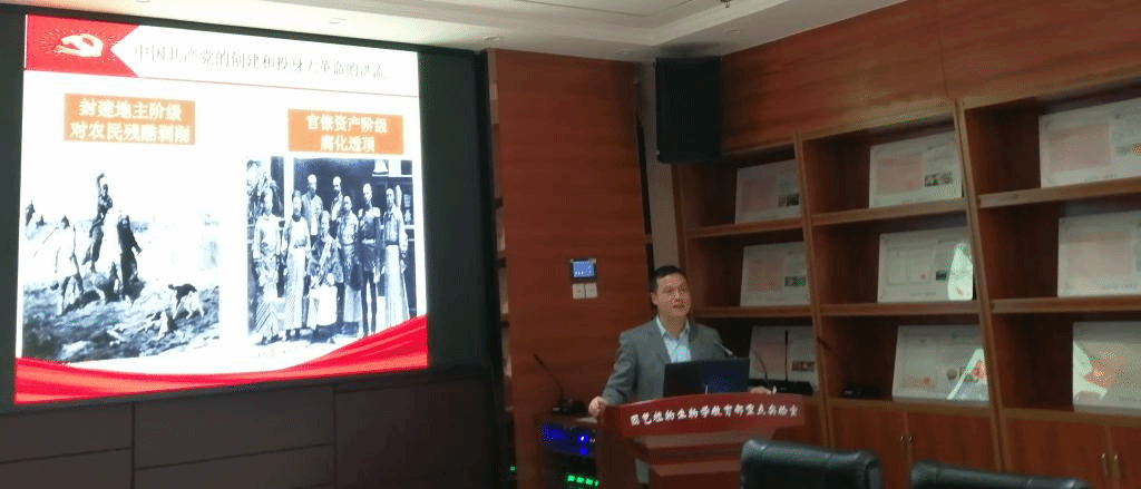 首先,周继荣同志以“中国共产党的创建和投身大革命的洪流”为主题,以建党前后的时间经纬为主线,生动讲述了中国共产党创建的艰辛和党带领全国人民走过的光辉历程。他从建党的时代背景讲起,深刻揭示了建党前夕中国劳苦大众遭受的阶级压迫和残酷剥削,而太平天国运动、洋务运动和戊戌变法均未能解决这种深层次的政治经济矛盾。历史最终选择了中国共产党,在具备阶级基础、社会基础、组织基础(共产主义小组)之后,中国共产党于1921年7月23日正式创建。从领导三次大罢工到党的第三次代表大会促成第一次国共合作,再到遭受“四一二反革命政变”和“七一五反革命政变”的挫折,大革命的失败让共产党人意识到工农武装的重要性。随后从南昌起义到八七会议,从秋收起义到井冈山茨坪创建第一个农村革命根据地,从三湾改编到古田会议,从五次反围剿到遵义会议,从二万五千里长征到陕甘宁会师,共产党人用实际行动诠释了这个党为实现革命理想不惧万难的政治本色。在抗日战争时期,为促成第二次国共合作,构建和巩固民族统一战线,共产党人以大局为重,进一步体现了高风亮节、为国为民的政治本色;从平型关大捷到百团大战,共产党领导下的中国军民在正面和敌后战场付出了巨大的牺牲,取得了辉煌的战果。从1945年4月党的“七大”召开,确立毛泽东思想的指导地位,到解放战争全面胜利,党带领全国人民取得了新民主主义革命的伟大胜利!这一幕幕、一帧帧充满光辉的岁月,见证了中国共产党从弱小走向强大,从苦难走向胜利的百年历程。最后,周继荣同志又领学了“习近平总书记在福建考察时关于开展党史学习教育的重要指示精神”和“习总书记考察清华大学时的重要讲话”等内容。
