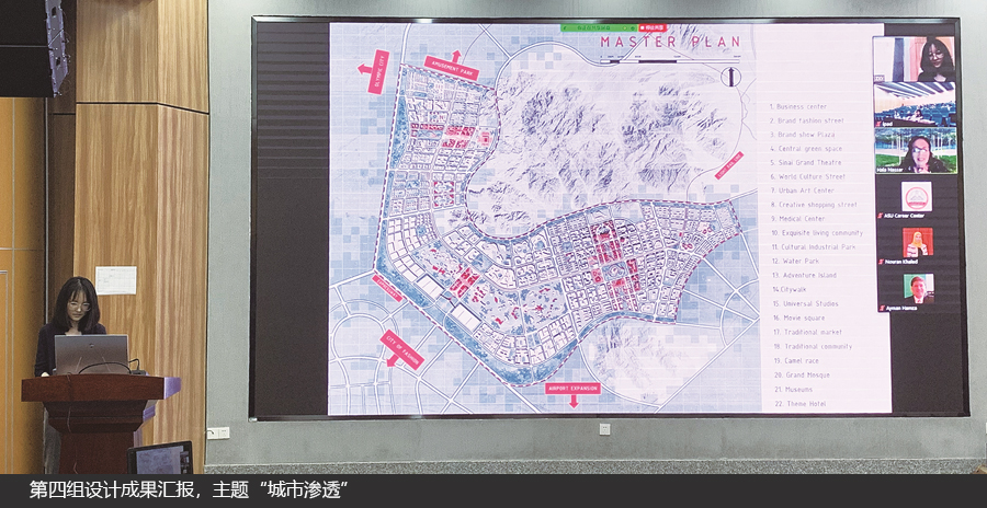 2021年6月11日上午,“2021中美埃联合设计工作坊课程”在景园楼顺利开展课程答辩。本次设计场地由埃及艾因沙姆森大学提供,基址位于埃及红海沿岸著名的旅游城市Sharm El Sheikh,课程面向2020级风景园林学研究生进行授课,课程教师团队为邵继中、王玏、章莉和张炜。答辩邀请到华中科技大学董贺轩教授、美国克莱姆森大学 Hala Fouad Nassar教授、埃及艾因沙姆森大学Ayman Farid副教授、kaiyun开云官方网站曾晨教授、张斌教授五位嘉宾,开展线上线下相结合的国际联合设计课程答辩与评图。