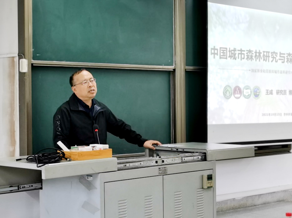 报告开始前,举行了简短的第五届中国林科院华中农大林学英才班结业证书颁发仪式,肖文发、林群、周继荣共同为第五届林学英才班学员颁发了结业证书。随后,肖文发研究员作了题为“新时代森林生态学漫谈”的专题报告,报告从什么是新时代,新时代森林为什么重要、你我认识的森林及森林生态学、新时代森林生态学发展的几个想法等方面深入浅出的介绍了新时代森林生态学发展的背景、主要理论、趋势、应用价值等系统内容。王成研究员作了“中国城市森林研究与森林城市实践”,报告围绕城市生态建设的国家导向、城市森林需要解决什么问题、城市森林研究的主要内容、近期城市森林研究的热点、从理论到时间——中国森林城市建设等5个方面展开,系统介绍了城市森林与森林城市的理论和实践工作。