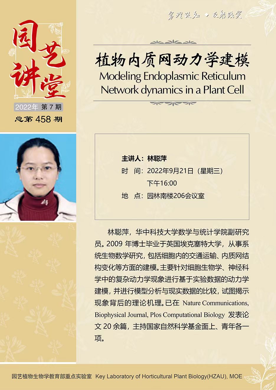 【园艺讲堂】植物内质网动力学建模Modeling Endoplasmic Reticulum Network dynamics in a Plant Cell