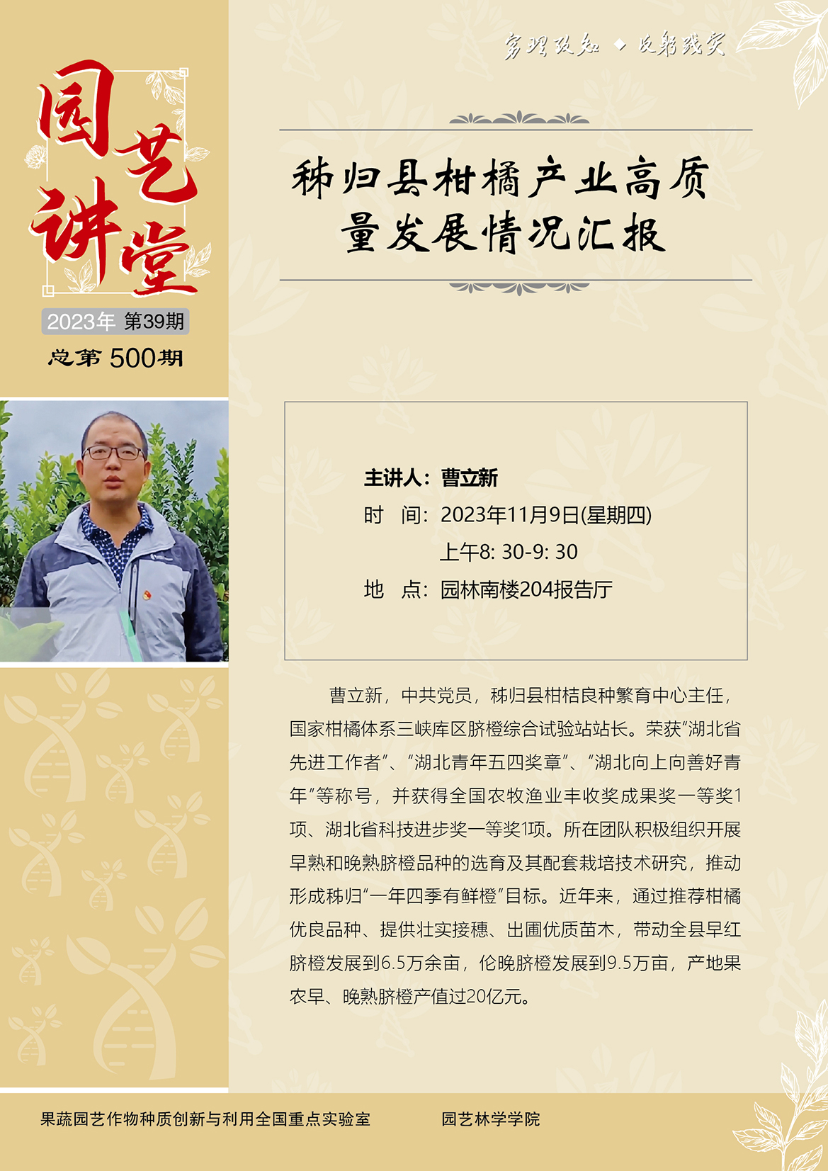 【园艺讲堂】秭归县柑橘产业高质量发展情况汇报
