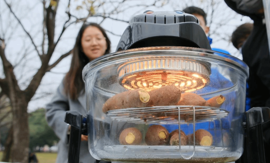 橘子灯、压花书签、植物拓印、扭扭棒花卉、锦花团扇、创艺花环、茶点心等制作体验区围满了人,大家在活动组织同学的指导下,发挥着自己的才能,创作出属于自己的作品。热气腾腾的烤红薯、香味扑鼻的关东煮、鲜红喜人的糖葫芦、奶香四溢的围炉奶茶则给大家在寒冷中带来一丝温暖。