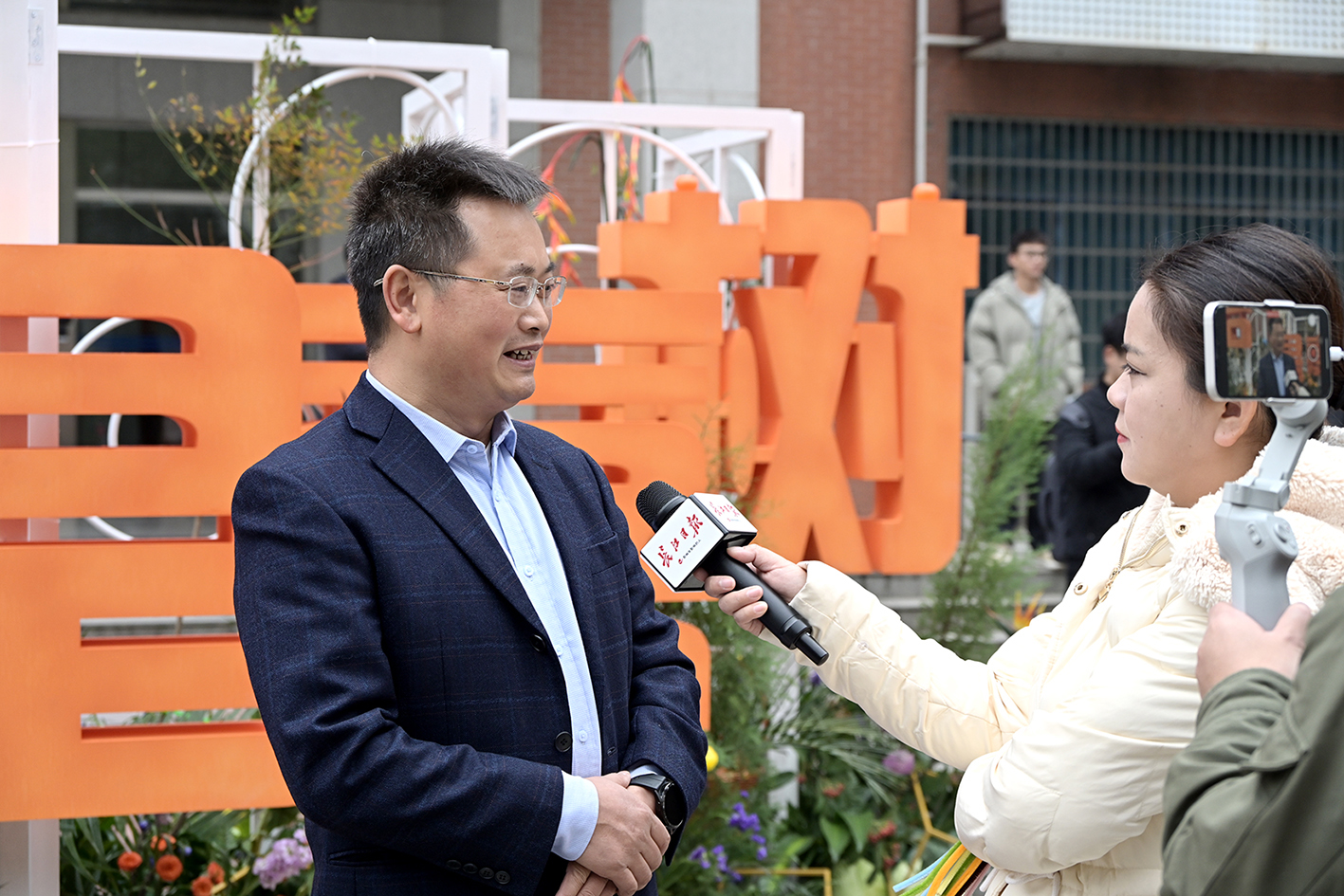 学院院长程运江教授接受媒体采访(程玉华 摄)