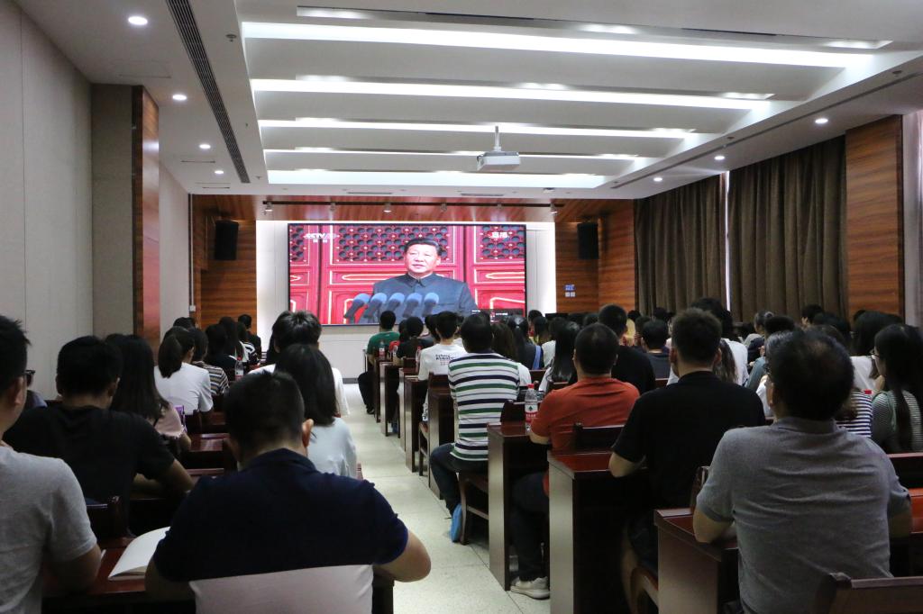10月1日上午十点,庆祝中华人民共和国成立70周年大会在北京天安门广场隆重举行。kaiyun开云官网师生于园林南楼204观看实况直播,校党委常委、副校长杨少波、院党委书记张宏荣、院长程运江等学院全体领导、各支部党员、师生代表等出席。
