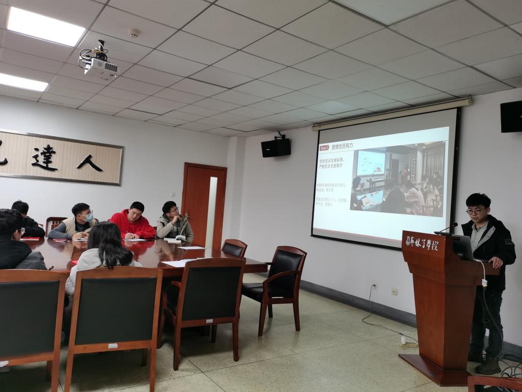 会议上,党支部书记晏智首先进行了2020年度茶学研究生第一党支部工作汇报。2020年,党支部定期进行党内理论学习并积极撰写学习心得,坚持党员管理规范与党员义务,积极参与各类组织管理工作与班风学风校风建设,有效地宣传支部信息,并且组织参与多项有意义的支部立项活动,严格按照“七个有力:教育党员有力、管理党员有力、监督党员有力、组织师生有力、宣传师生有力、凝聚师生有力、服务师生有力”进行支部建设。