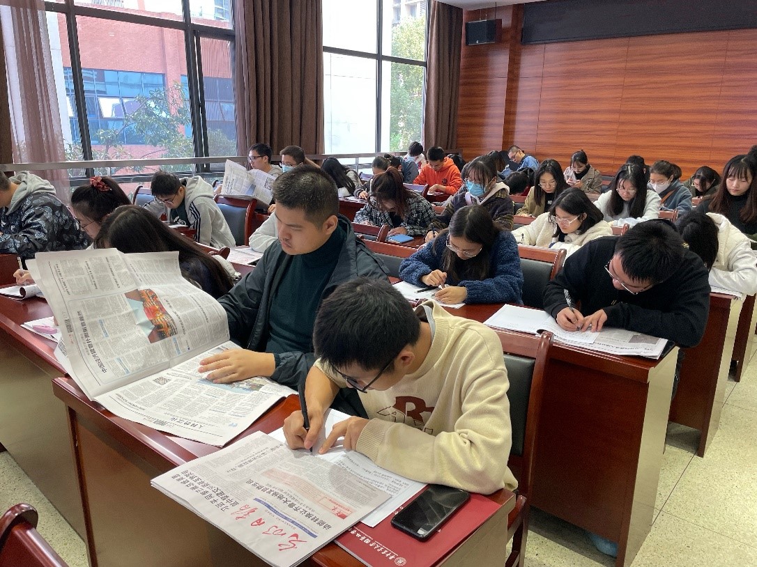 11月11日,kaiyun开云官方网站组织学院大学生于园林南楼204报告厅进行了本周四理论学习。本次理论学习分为视频学习、读报学习和理论知识有奖竞答三个环节。