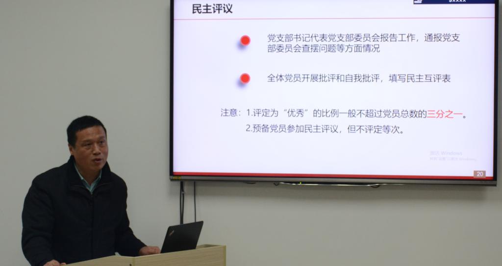 为加强党支部党建工作,推动支部内党员间沟通交流,2021年3月21日下午,果树学研究生第一党支部于园林南楼521会议室开展2021年度组织生活会及民主评议党员活动。本次会议主要从党支部年度工作汇报、“两会”学习、党员批评与自我批评、民主评议党员活动四个方面展开。支部党建指导教师周继荣老师出席本次活动。