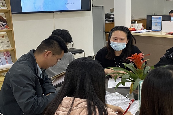 4月6日下午,张瑜服务队指导老师何寿鹏与张瑜服务队成员一行4人到玫瑰湾社区开展志愿项目研讨。玫瑰湾社区书记刘玺一行3人参会。
