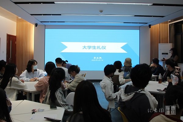 4月7日19:00,李永熙在园林北楼虚拟仿真实验室向学院各部门学生干部举办大学生面试礼仪培训讲座。李永熙以十大礼仪基本原则打开话题,向台下学生简单介绍了面试种类,由此引入面试基本礼仪要素,并从仪容、仪表、举止及语言四个方面进行培训。