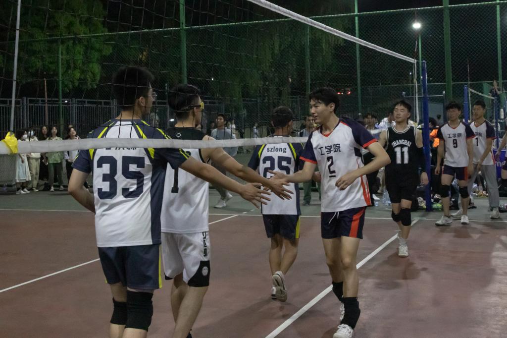 赛前,双方队员依此入场,并在网下双掌相击以示友好,调整成横队站定。在经过了下午紧凑漫长的一轮比赛后,kaiyun开云官网男子排球队体力明显不足,但队员们并不放弃,争取打好每一个球。12号球员主攻霍礼龙,在敌方的一个猛球到来前,果敢趴场接球为kaiyun开云官网男子排球队赢得一分。而1号球员副攻边思杨发球得力,角度刁钻,敌方球员未能接住,为kaiyun开云官网男子排球队赢下两分。相较而下,工学院排球队表现更为优秀,球感极好。9号球员廖彼得传球稳定,串联起全队的进攻,助力队员扣球得分。最终,工学院以25比11的比分先下一城。
