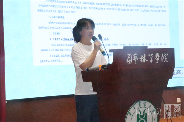 其后,园林1901莫秋承、园艺1901张欣茹和园艺2001彭天花三位选手分别选择了抖音运营、辅导员和青年研究员进行求职。在不到8分钟的时间内,他们从自我认知、职业认知、目标规划、行动基础等方面展开了简短而有力的论述,并从容应对了评委的提问。