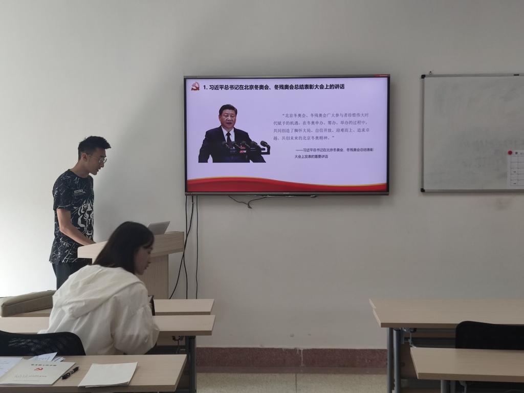 会议第二项议程,党支部宣传委员吴俊琛同志组织党支部成员学习习近平总书记在北京冬奥会、冬残奥会总结表彰大会上的讲话和习近平总书记给中国冰雪健儿的回信。会上,吴俊琛同志总结了习近平同志讲话及回信的主要内容、带领大家深入学习总书记讲话的精神。吴俊琛同志谈到:“在奋斗中放飞人生梦想,在拼搏中成就一番事业,这是中国青年成长的必由之路,也是担负起时代责任的使命要求”。