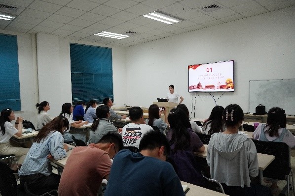 首先,与会成员学习了习近平总书记考察中国人民大学发表的重要讲话精神,习近平总书记到中国人民大学先后走进思政课智慧教室、博物馆、图书馆,观摩考察中国人民大学教育和科研成果等情况,并主持召开师生代表座谈会。习近平总书记寄语全国广大青年:“希望全国广大青年牢记党的教诲,立志民族复兴,不负韶华,不负时代,不负人民,在青春的赛道上奋力奔跑,争取跑出当代青年的最好成绩!”管书萍同志谈到:“习近平总书记对全国高校都有着一样的期盼和关怀,作为高校研究生,我们要做到坚持党的领导,传承红色基因,不负青春,不负人民。”