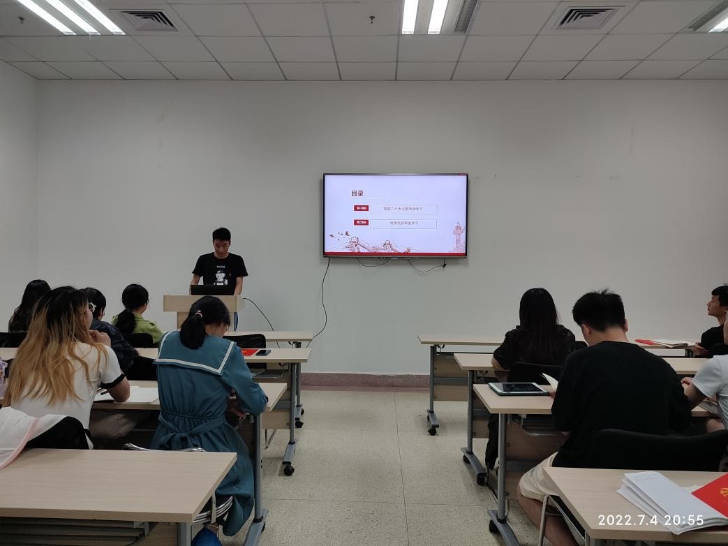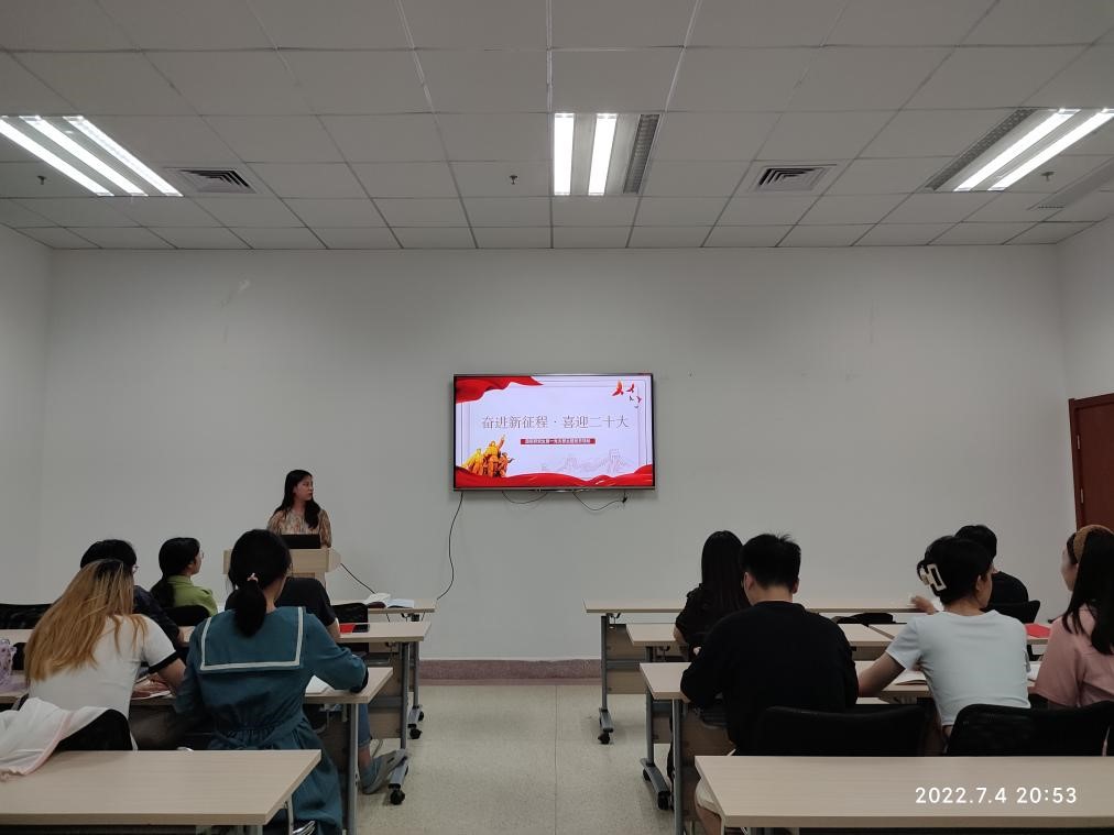中国共产党第二十次全国人民代表大会将于2022年下半年召开。王飞龙同志为全体党员讲解了二十大的时代背景和重要意义。王飞龙同志谈到,站在新时代的潮头,我们党员要做到坚定理想信念,学好党史,以史明理,要时刻鞭策自己学知识、长本领、修品德,随时准备着把青春与热血献给人民,争做始终不负人民的栋梁之材。