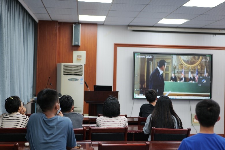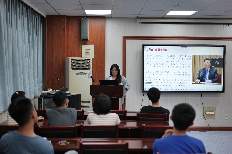 首先,李建美同志带领全体同志观看并学习“回望党的百年崛起历程”视频,并通过问答形式带领同志们重温党史,回顾党的辉煌成就。“一个民族的崛起,首先是精神的崛起,希望我们能够看看曾经那段苦难而又辉煌的历史,为中华之崛起而自豪”,项思翔同志在视频学习结束后分享了自己的感受。