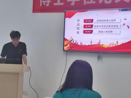 7月4日,蔬菜学研究生第一党支部在园林南楼421会议室开展“奋进新征程,喜迎二十大”主题党日活动,活动由支部纪律委员李帅同志主持。支部成员共同回顾了党的奋斗历程,观看了《党旗在一线飘扬》——焦点访谈系列节目,并在党支书叶润文同志的带领下重温入党誓词。