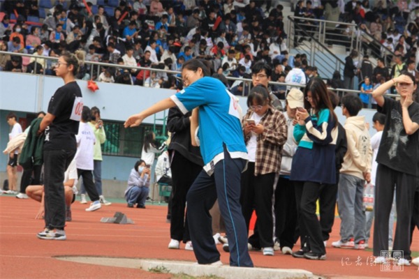10月21日上午8点,学校全体运动员、裁判员、后勤工作人员及观众汇聚于东运动场内迎接校运动会。细雨朦胧,秋意泠泠,但师生们对运动会的热情依然高涨饱满。十点三十分,天色转晴,女子铅球决赛在东运动场北面举行。