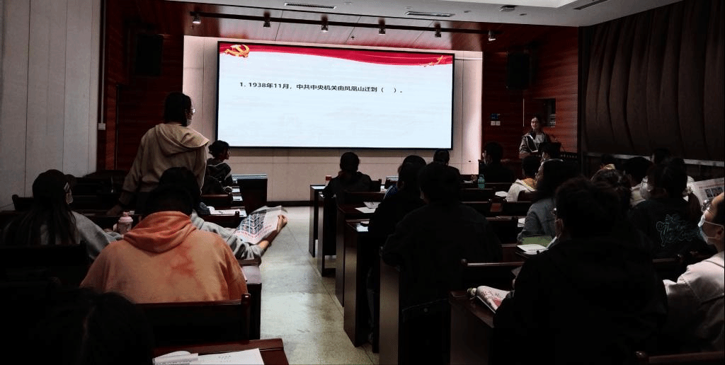 本周理论学习的最后环节主要围绕党史知识开展,以知识竞答调动同学们的积极性,并将最新一期的《求是》杂志作为奖品发放给同学们。