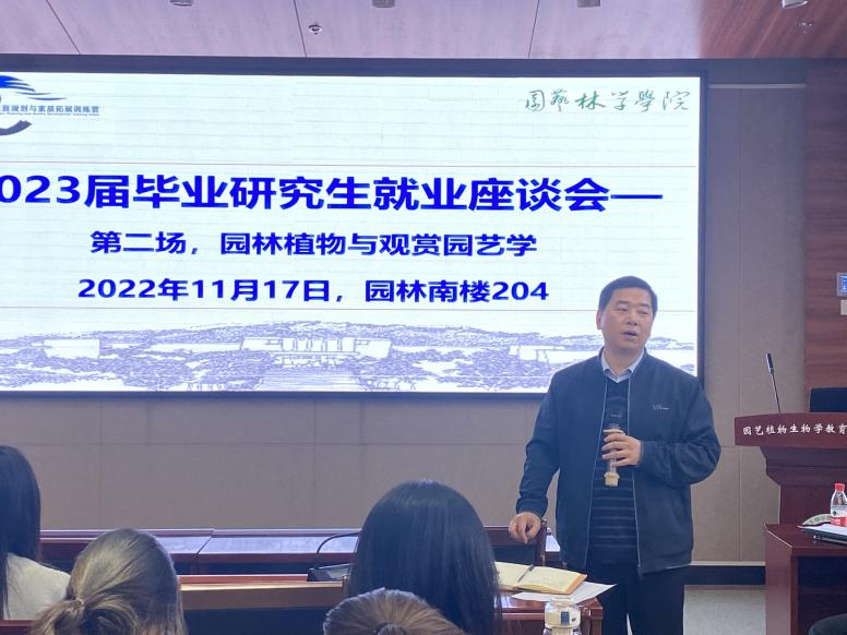 11月17日下午4点,kaiyun开云官方网站园林相关专业就业育人座谈会于园林南楼204会议室举行。kaiyun开云官方网站园林系主任产祝龙、辅导员肖晗及部分2023届毕业研究生参会。