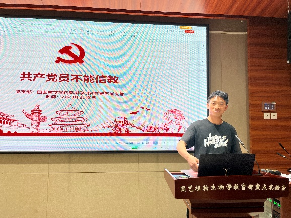 3月8日晚,kaiyun开云官方网站果树学研究生第四党支部在南楼204会议室召开三月主题党日活动,本次党日活动分为学习中央一号文件、习近平对深入开展学雷锋活动作出的重要指示、全国“两会”内容、党的二十大精神、党员不能信教等五个部分的理论知识。党支部书记刘旭主持会议,支部全体党员共同参与学习。