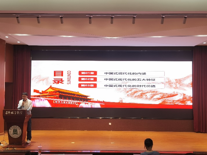 之后,宣讲员还依次讲解了中国式现代化的五大特征,明确同学们要坚持道路自信、理论自信、制度自信、文化自信,深入学习了中国式现代化的时代价值,激励着同学们在奋进新时代中国式现代化中留下青春烙印。
