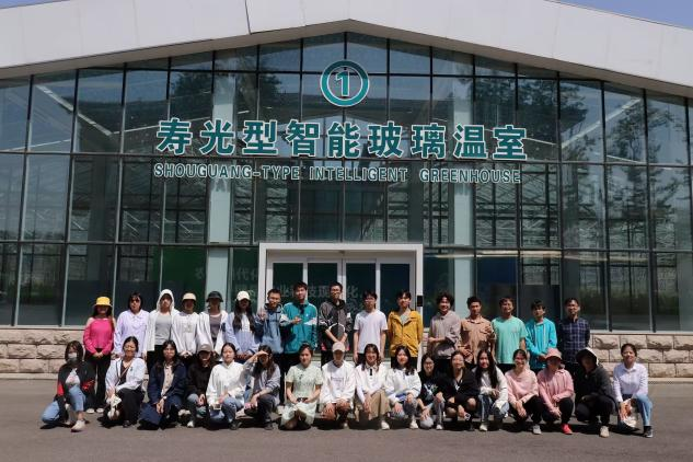 同学们参观了现代农业高新技术试验示范基地,由中国工程院院士赵春江领衔规划设计,以“下沉式、大斜面、外保温”为创新要素的寿光型智能玻璃温室,占地120亩,应用120多项专利技术,比我国现行应用的荷兰文洛型温室,较低耗能一半以上,保温性能好,生产效益更高。寿光型智能玻璃温室,立足“世界眼光,国内一流”标准定位集中攻坚现代农业新技术,新品种,新装备,实现种子从研发,种苗繁育,标准种植到品牌营销全链领,全力打造蔬菜产业发展高地,构建了蔬菜智慧化生产的全产业链标准体系管理模式。基地也成为现代蔬菜产业,科技创新区与成果转化集聚区,实现了把科技的成果写在大地上。