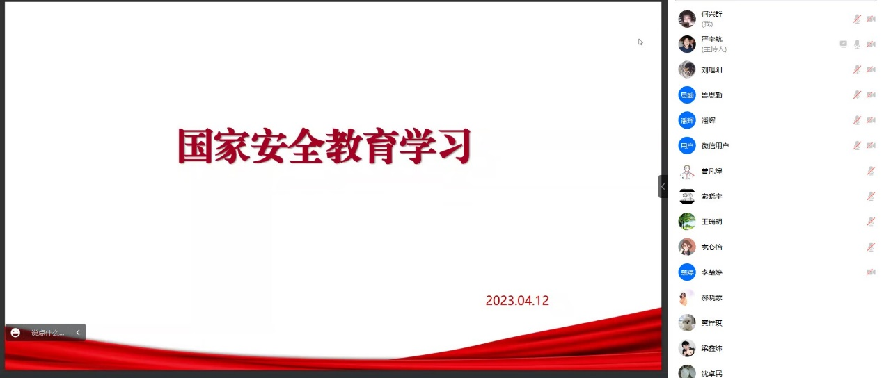 接下来还开展了国家安全教育相关内容的学习。班长严宇航表示,当前我国国家安全的内涵外延比历史上任何时候都要丰富,时空领域比历史上任何时候都要宽广,内外因素比历史上任何时候都要复杂。因此,我们必须要站在讲政治的高度,在今后,在各自岗位上守土有责、守土尽责,为党的长期执政、国家长治久安、人民安居乐业夯实基础。