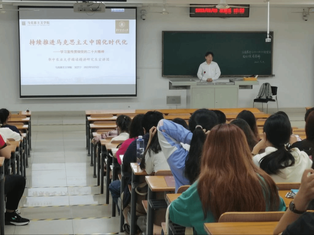 为进一步学习贯彻党的二十大精神,做到党的二十大精神入脑入心入行,5月5日,学校研究生“精读精讲”宣讲团成员、马克思主义学院刘芝宁同志为学院2022级本科生开展题为“持续推进马克思主义中国化时代化” 的党的二十大精神宣讲。