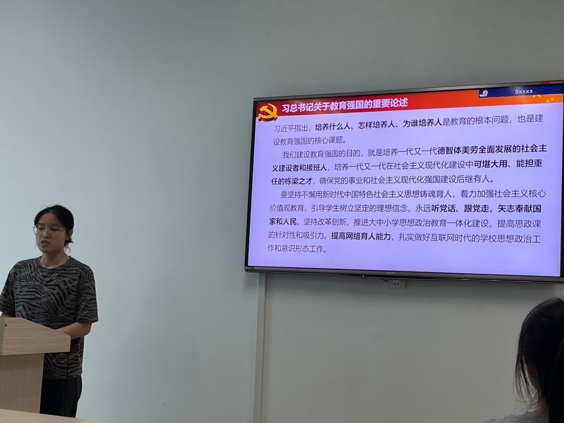 随后,党员们结合自身实际情况,就教育强国主题进行了深入探讨。佘紫薇同志谈到,作为刚加入党组织的党员,应发挥党员的先锋模范作用,佘紫薇同志表示,毕业后她将返乡工作助力乡村振兴。大家纷纷表示,要提升自身政治素养和专业能力,为推动强国建设和教育事业发展贡献力量。