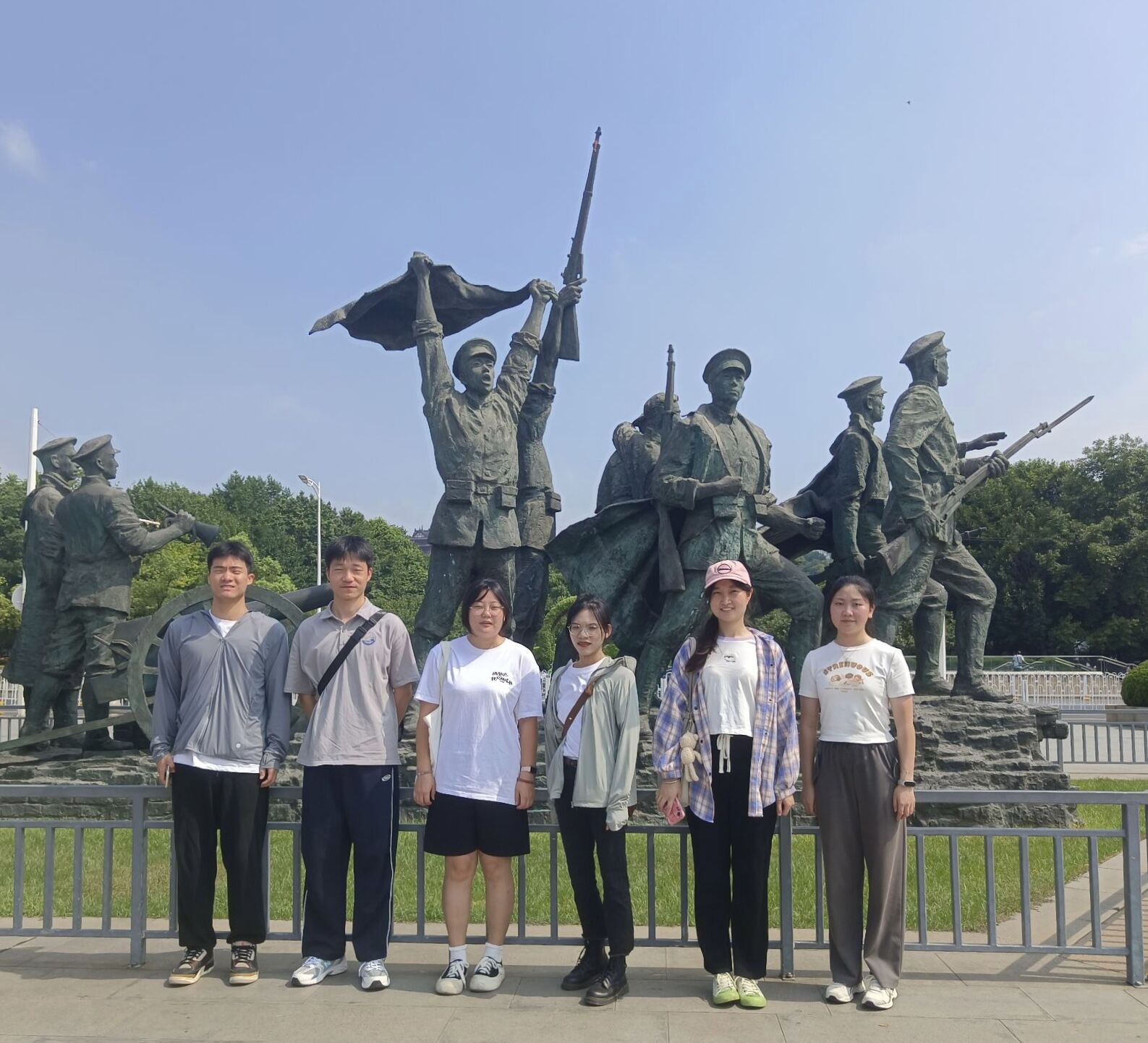 团队成员在“走向共和”群雕前合影(通讯员:陈晓琳摄)