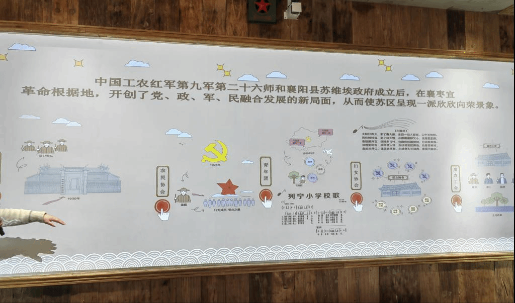 到达星火村后,星火村的村支书首先向同学们介绍了星火村的红色背景——新民主主义革命时期,红九军第26师在此开设了红军枪炮厂、红军后方医院和列宁小学。近年来,星火村抢抓红色旅游的机遇,大力改善基础设施,因地制宜,明确红色美丽休闲乡村建设思路,红色旅游发展逐步走上正轨,被列为2021年度湖北省红色美丽乡村试点村。在村支书的带领下,同学们参观了革命教育馆、红九军第26师师部旧址及后方医院旧址等3个场馆。场馆内,以展板、浮雕、旧物展陈、全息投影等多种形式全方位还原了当年的场景。此外同学们还通过回忆英雄事迹、寻找该村标志物以及调研走访农户等方式来加深对星火村过去、现在、未来的认知。