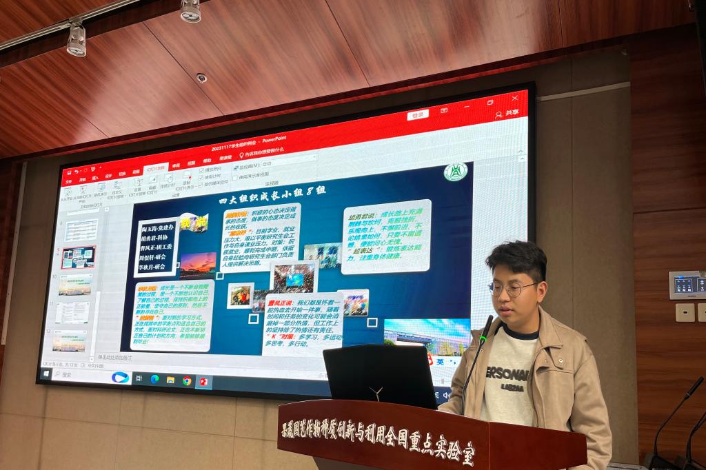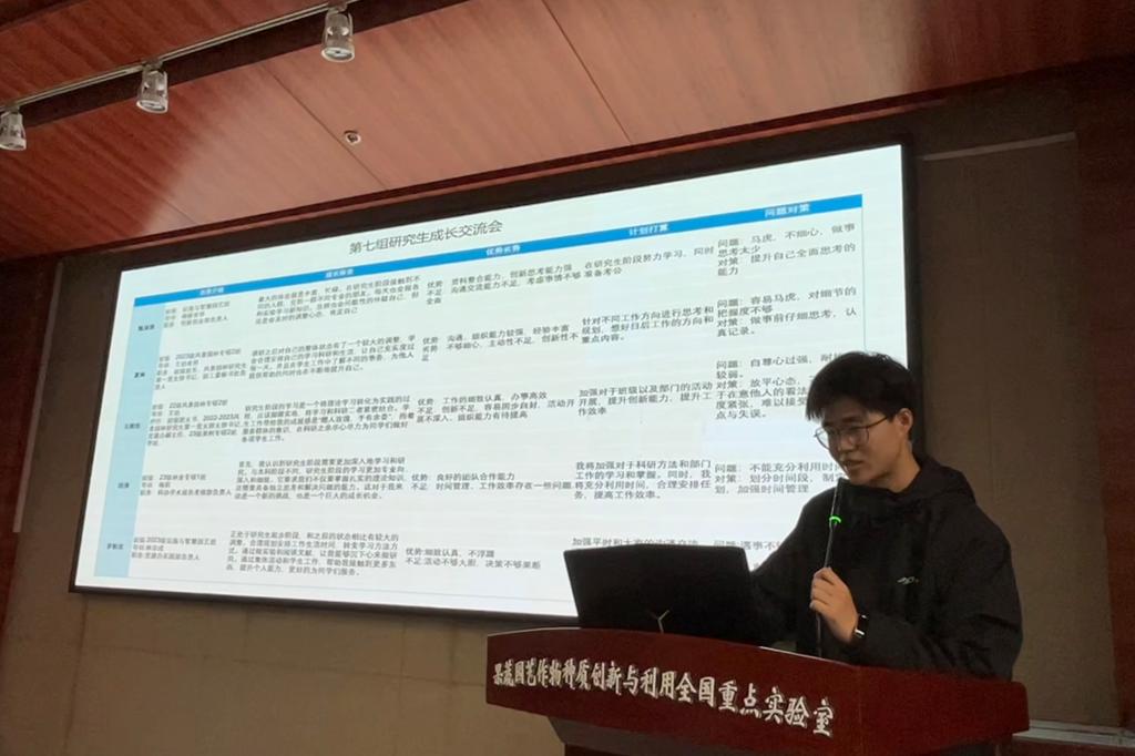 会议开始,成长型小组1-8组主要针对小组成员介绍、研究生阶段的成长体会、自身能力优势与劣势以及计划打算等方面进行了交流汇报。