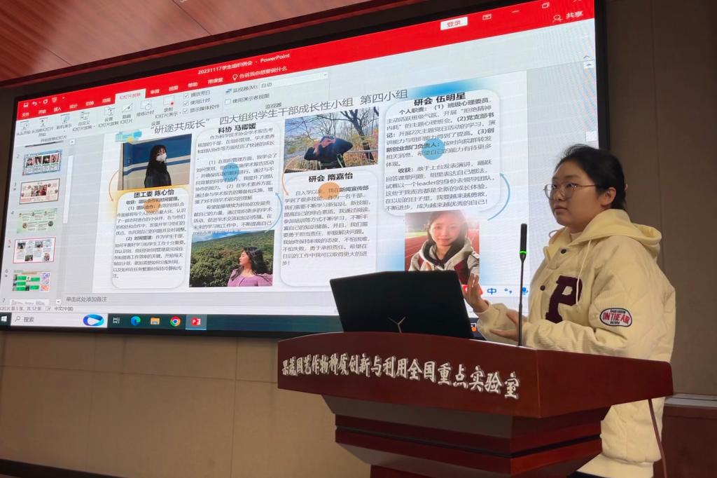 陈钰洁介绍学生干部骨干培训班