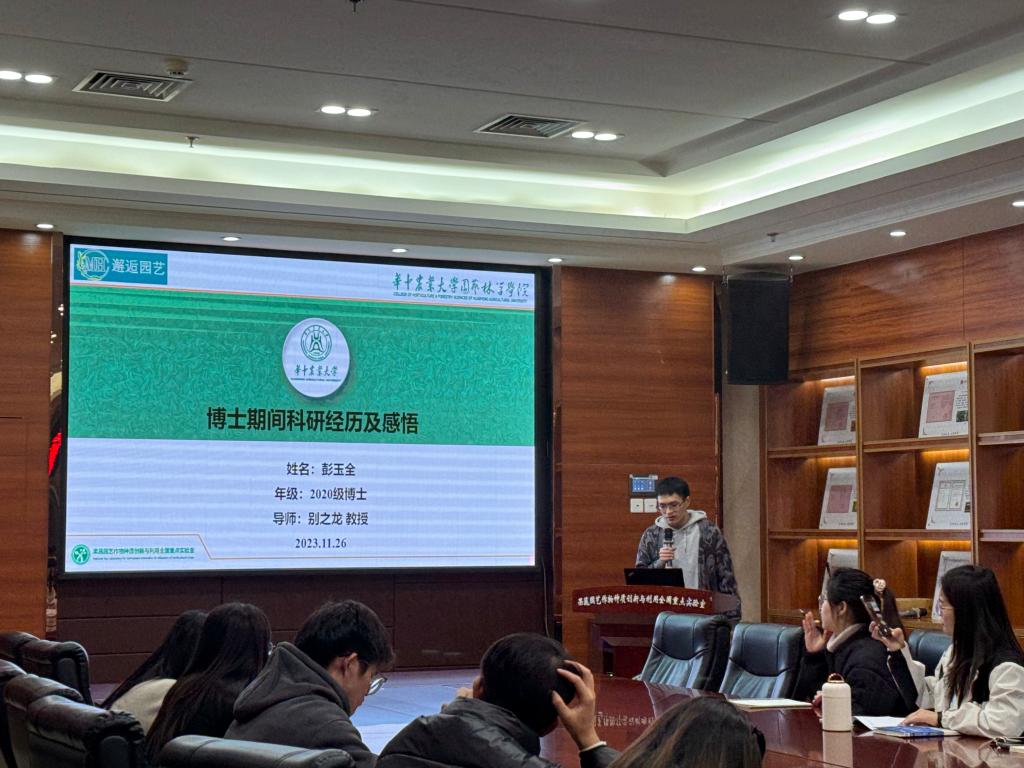 11月26日晚,kaiyun开云官方网站邂逅园艺“科研,贵在坚持——国奖获得者分享交流会”在园林南楼206会议室顺利开展。博士生国奖获得者楚乐乐、刘胜军、彭玉全、朱春琳分别向学院研究生讲述自己在科研道路上遇到的困难、挑战以及自己的研究成果。