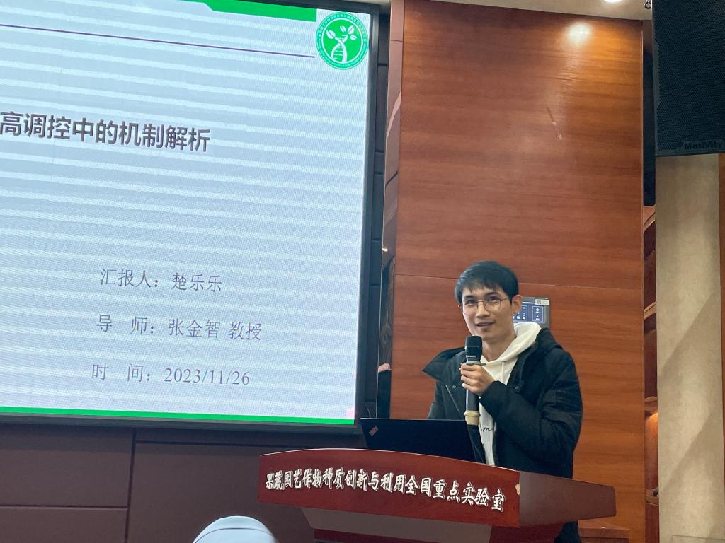 楚乐乐从研究背景、实验结果、心得体会三个方面为大家讲述自己的学术故事。对于课题的选择他说到:“因为柑橘适宜的矮化砧木和品种较少矮化栽培模式不成熟,所以解析柑橘矮化机理,培育矮化品种具有重要意义。”接着他为大家讲解了CiACS4调控柑橘株高机制方面的研究成果。楚乐乐将在下周答辩,结束自己现阶段的学术生涯,他为大家分享自己总结的研究心得“多做→多读→多思考”,根据“做’出来的结果,结合”读”出来的知识储备,进行思考,对实验顺利进行会有很大帮助。