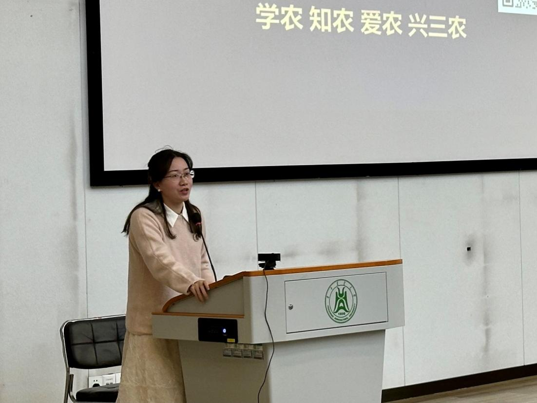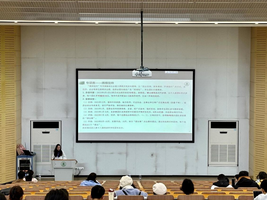 会议伊始,李秋月同学针对“互联网+”和“挑战杯”两项创新创业赛事进行了详细的介绍。其中,她结合农科专业特点,重点介绍了“互联网+”大赛的“青年红色筑梦之旅赛道”的参赛要求以及参赛组别,引导同学们合理选择优势赛道。同时她强调,这两个赛事是大学生重要的创新创业实践平台,通过参加这些比赛可以开拓学生的视野和认知、激发大学生的创造力。
