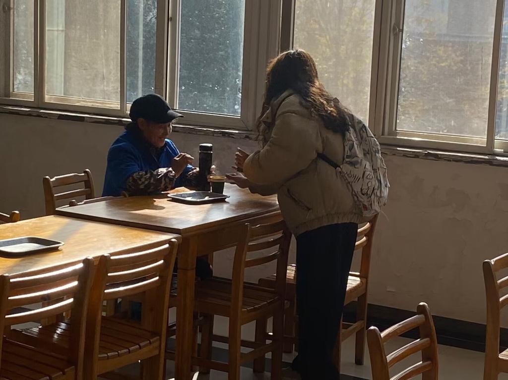 随后,同学们按照分组领取活动材料后,有序前往食堂、超市等指定地点开始了送茶送暖行动。志愿者同学聚在空闲的桌前,给每一个茶杯添上茶叶,热水缓缓从壶中倾泻而出,茶叶在水中翻滚,一股沁人心脾的茶香随着热气冒出。热茶制作完成,同学们一杯接一杯端给工作人员。在同学们表明来意后,叔叔阿姨露出惊喜的笑容,志愿者小心提醒着“你们辛苦了,茶是刚刚泡的,小心烫伤”,阿姨小心接过冒着热气的茶杯“谢谢同学们,你们有心了哟”。在工作不繁忙的时间段,他们端着茶杯聚在一起休息聊天,气氛平和美好。志愿者的一杯暖茶让他们繁忙的工作之余能有机会静下心来,感受茶的清香和片刻的宁静。