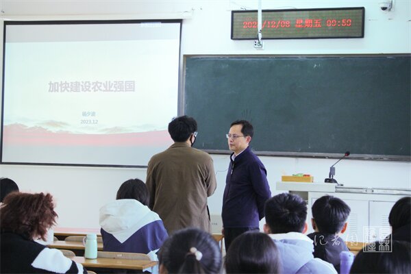 【核心提示】12月8日上午,副校长杨少波于三教A201为kaiyun开云官网23级园林专业本科生讲授了以农业强国建设为主题的形势与政策课程。