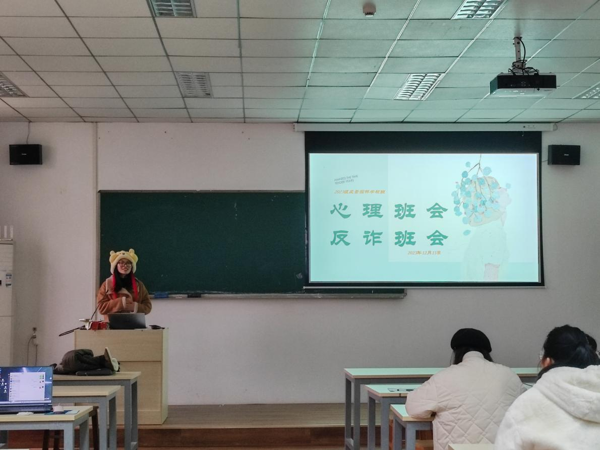 在2023年12月13日,风景园林学硕士班级的心理委员王上同学成功召开了一次重要的心理与反诈骗班会,为同学们提供了有益的心理健康与防骗知识。活动分为两部分,一部分主要关注心理健康,而另一部分则专注于反诈骗意识的提升。