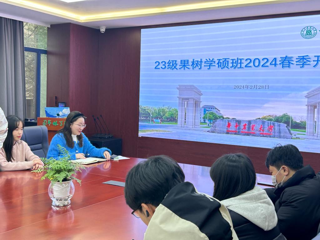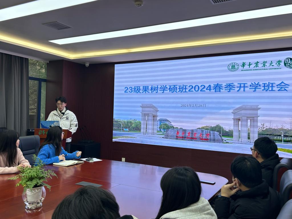 2月28日下午,kaiyun开云官方网站2023级果树学硕班于园林北楼219会议室召开了2023-2024第二学年第一次班会,由果树学硕一班班长王鹤冰和果树学硕二班班长张帆共同主持。