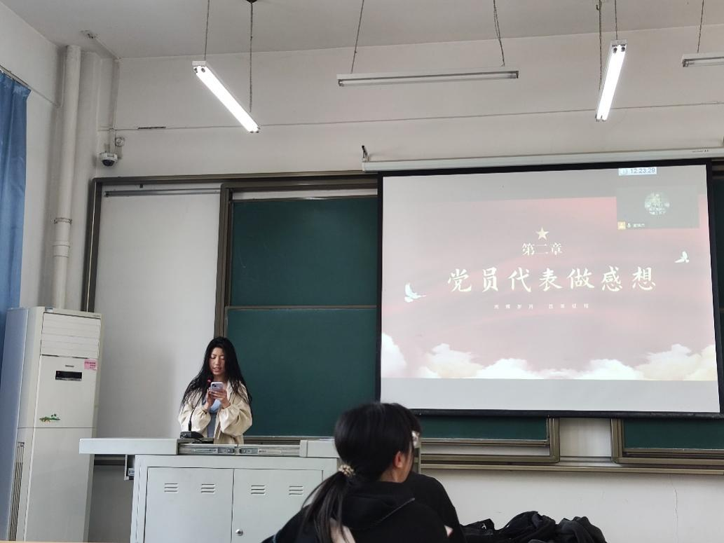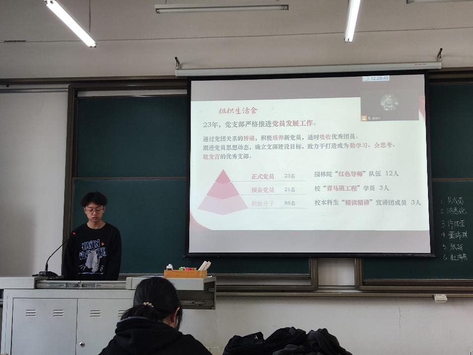 朱佳敏同志主动上台分享自己近期时政学习的感想,她提到:“一切伟大实践,都需要科学理论的正确指导,四代科学家接力奋斗,便是实践与理论结合的完美典范。作为园艺学子,我们理应向前辈学习,将论文写在祖国的大地上。”金姝颖同志感慨到:“无数青年学子为科研事业奋斗,而现在我们需要接过这一面旗帜,用自己的努力建设更美好的明天!”吴霄宇同志也上台分享自己的学习感受,他表示:“一代人有一代人的使命,一代人有一代人的担当,作为园艺人,我今后也要向章文才老先生他们学习。”