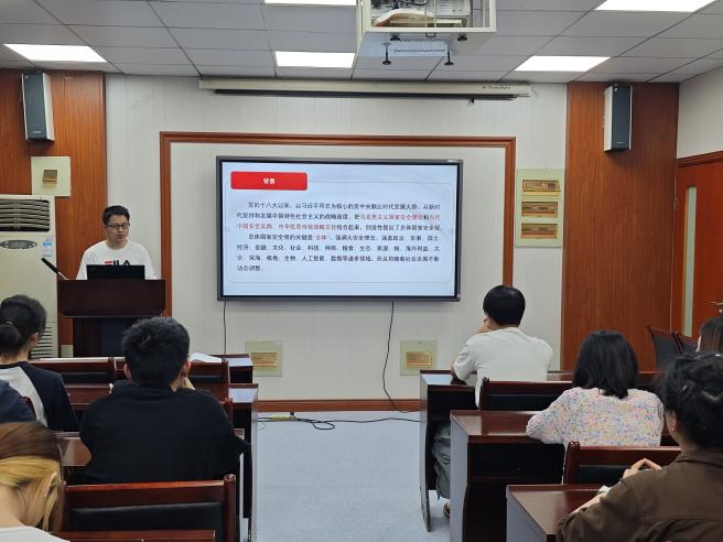 会议伊始,在董思涵同志的带领下,全体党员同志集体学习了习近平总书记关于总体国家安全观的重要论述,了解了总体国家安全观提出的背景、核心内容及意义,并通过列举境外企业与间谍盗取国家机密的恶劣事件,呼吁大家维护国家总体安全,坚决抵制不法行为。