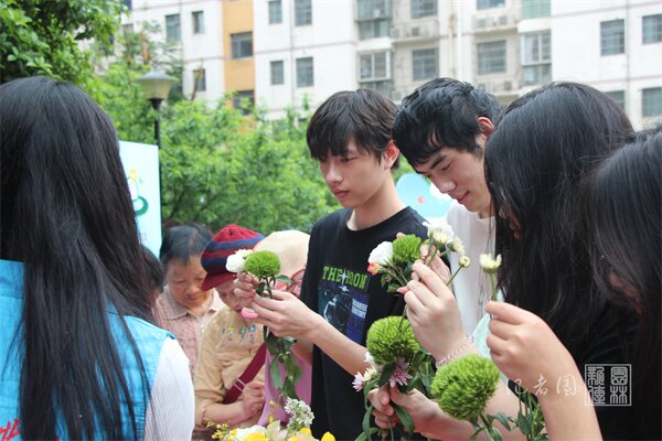 本次活动中,张瑜服务队的服务主要工作为插花艺术的宣传,利用小菊、桔梗、玫瑰、绿毛球等多种花材进行专业花艺展示。造型雅致的插花作品吸引了不少居民和学生前来围观体验。参与者既可以观赏志愿者们的插花表演,也可以自己动手DIY,在实践中感受鲜花带来的幸福感。轻松又不呆板的展现形式不仅增强了志愿者与服务对象之间的互动感,也给大家带来更沉浸的体验。一片欢声笑语,一片花团锦簇、一片其乐融融,生动展现了玫瑰湾社区联合张瑜服务队创新基层治理的风采形象。