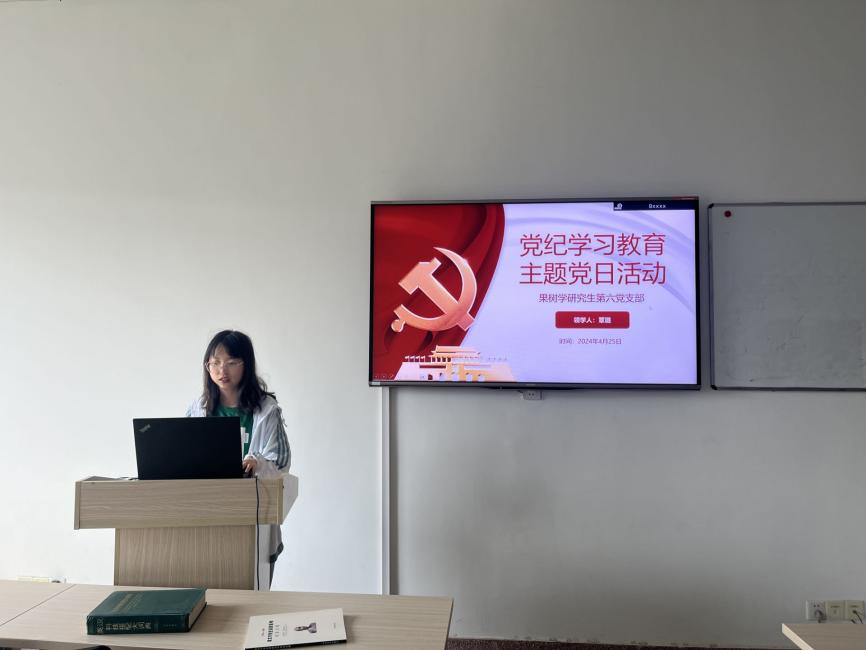 果树学研究生第一党支部开展党纪学习教育主题党日活动(刘泽洋 摄)