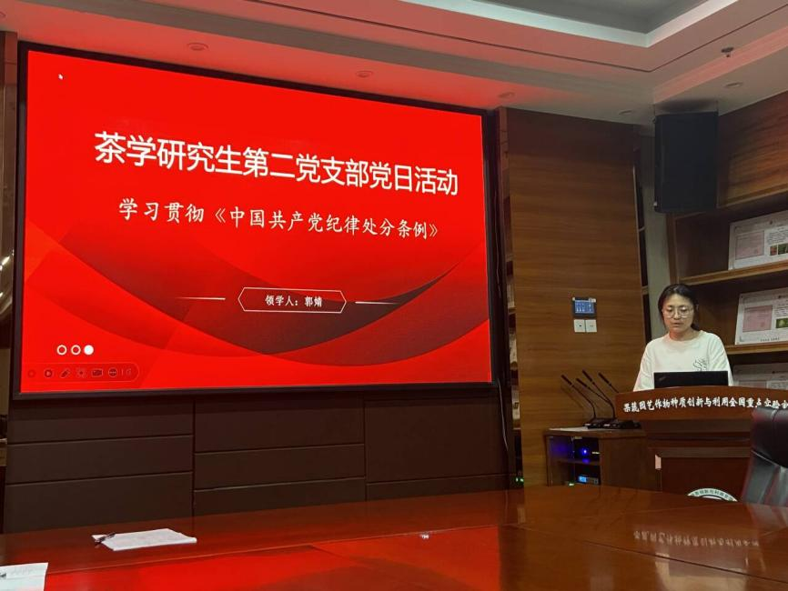 茶学研究生第二党支部开展党纪学习教育主题党日活动(刘珈彤 摄)